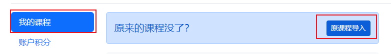 4.绑定手机后进入“账户中心”-“我的课程”-“原课程导入”。