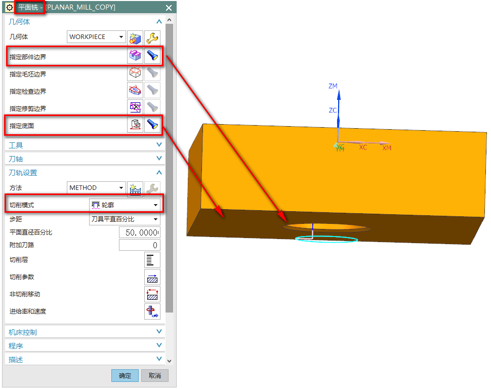 - 切削模式:使用轮廓