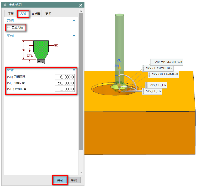 3、刀柄-勾选定义刀柄,