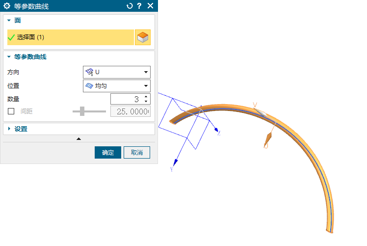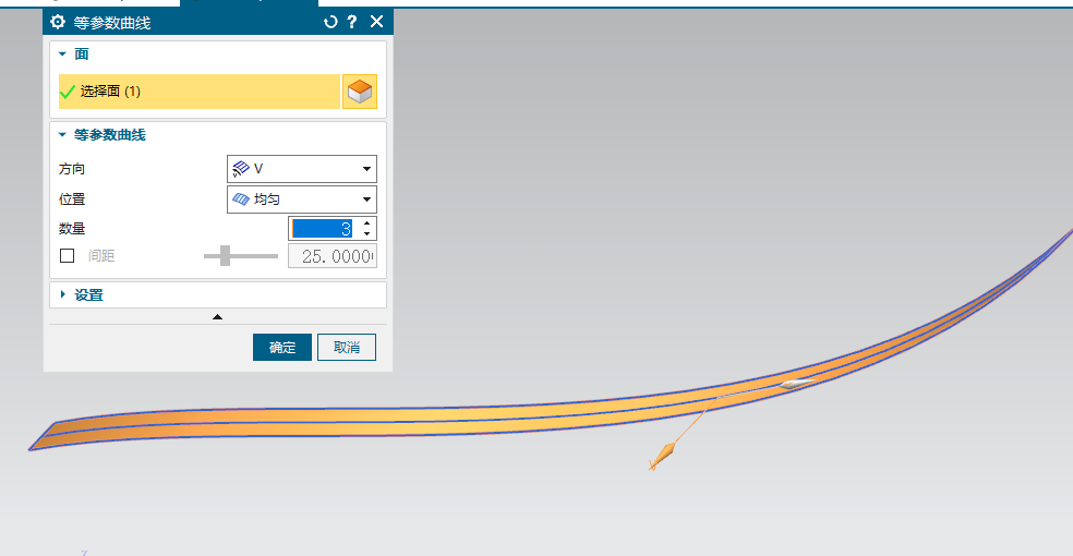 抽取等参数曲线,数量3,能看到抽出的两条。