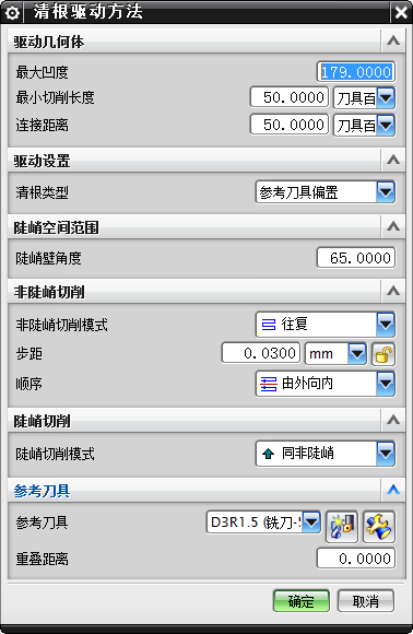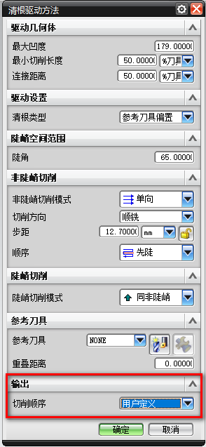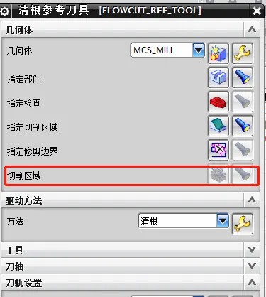 1、与之前的版本相比,NX10.0版本的清根输出选项已经改动了,在主界面指定修剪边界下面增加了切削区域,这个可以用户自定义修改。如下图所示: