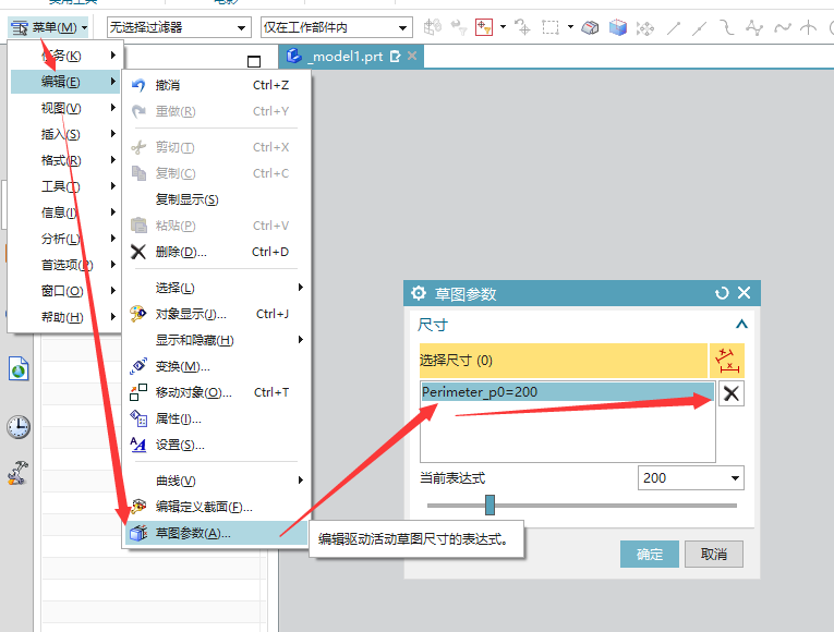 想要删的话可以直接把线删了重新画,或者在菜单-编辑-草图参数里删。