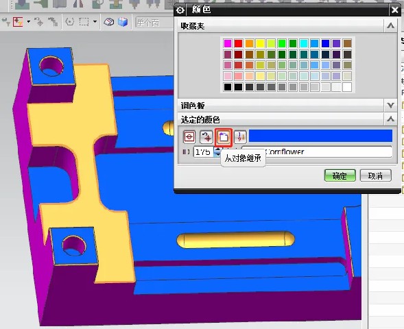 3、点击左侧的选择条-颜色过滤器,在选定的颜色里选择从对象继承,点击任意一个刚刚分析好的平面来继承这个颜色,如下图所示:
