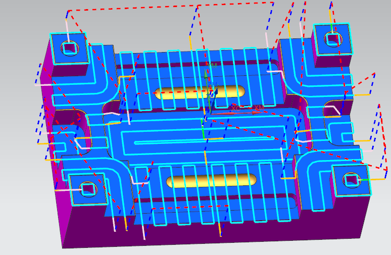 5、点击生成刀路,此时所有平面都生成刀路了。如下图所示: