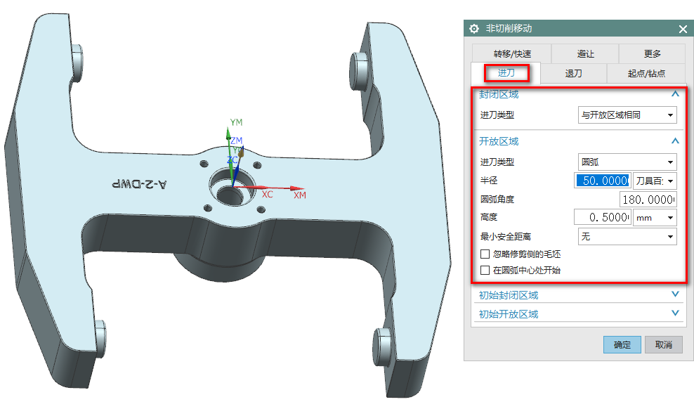 5、参数设置完成后,生成刀轨,这样就形成了全圆进退刀,从而解决踩刀到平面的问题,如下图所示: