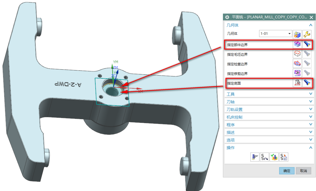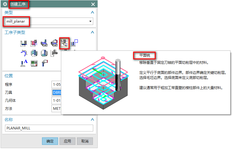 1、创建工序-mill_planar-平面铣,如下图所示: