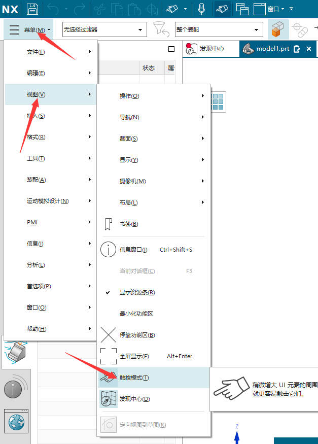 或者在菜单-视图-触控模式,将他退出。