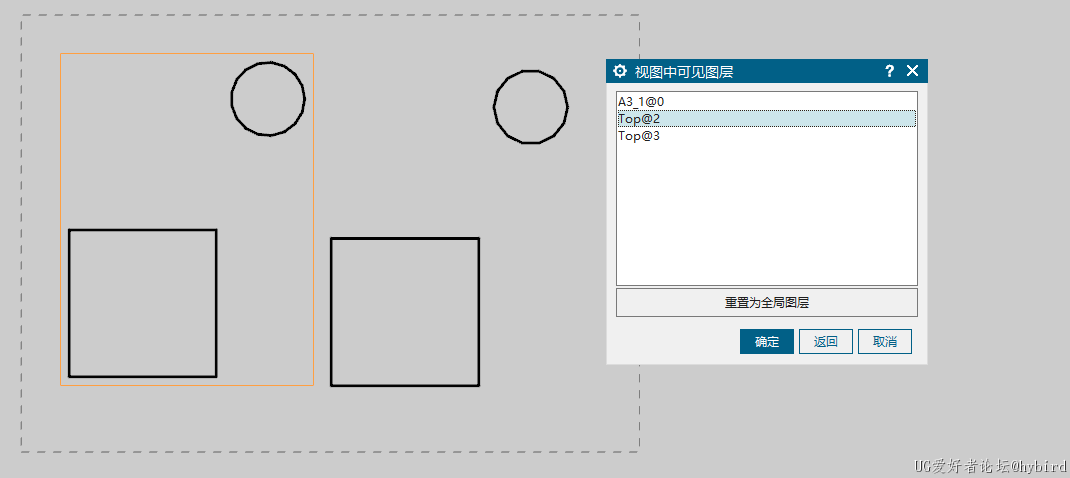 转到制图模块里,投影视图后(这时把不想要的零件图层关闭后,点视图更新--视图结果未变化,还是显示着的)。