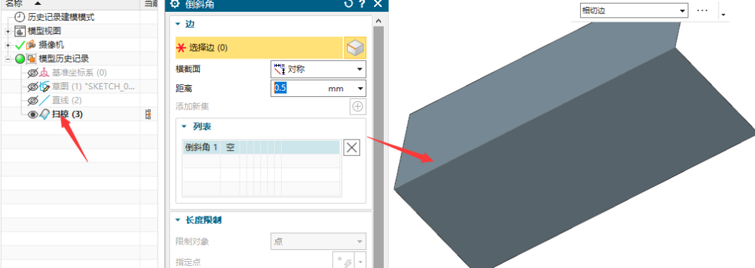 这个问题很多新手都碰到过,如下图所示,扫掠出来的面在想要操作拐角的时候选不了拐角边。