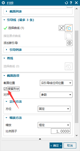其实我们只要把扫掠命令里的保留形状选项勾上即可,这个选项默认是没勾上的。