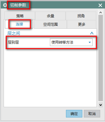 3、在【切削参数】界面中,【连接】-【层到层】-【使用转移方法】,如下图所示: