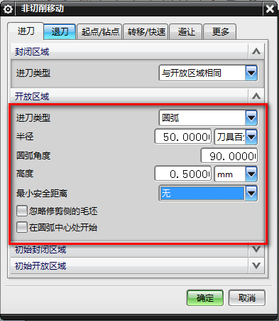 - 进刀类型:圆弧