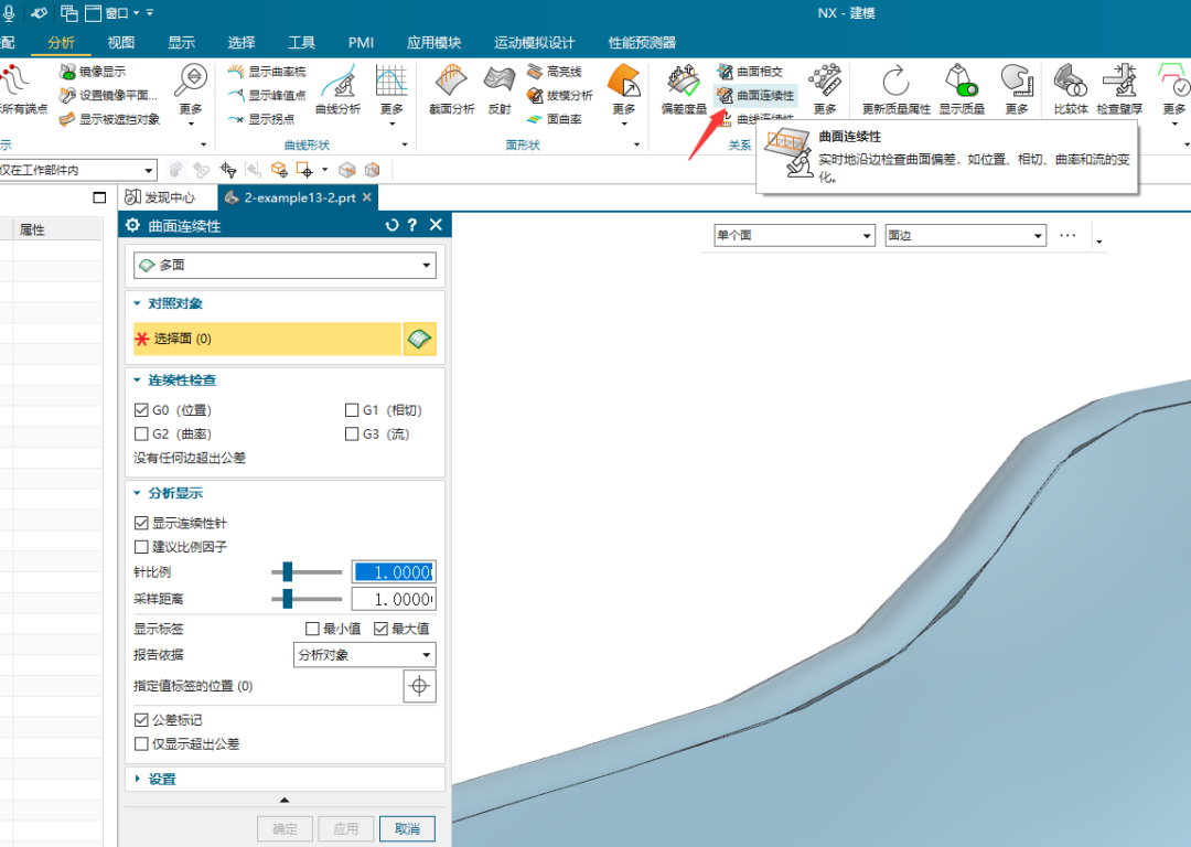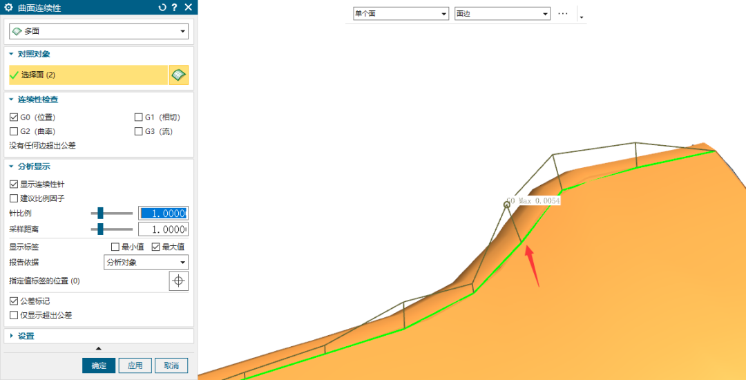 有没有间隙不能用眼睛看,要用命令去测量,有时候显示精度低就是有锯齿的,测量如下,使用曲面连续性命令。