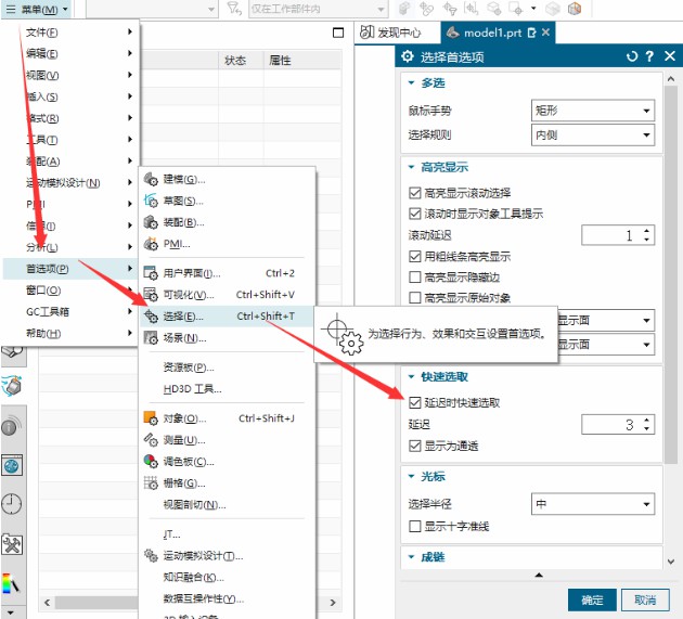 首选项-选择-把延迟时快速选取勾上