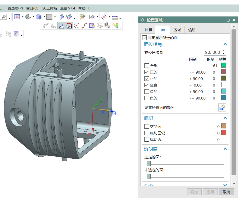 在编程加工前,我们经常要去分析不同加工的类型,比如平面、曲面、斜面、垂直面的位置,那么针对这类分析如何能通过颜色来区分加工的类型呢?下面跟大家分享一下操作方法。