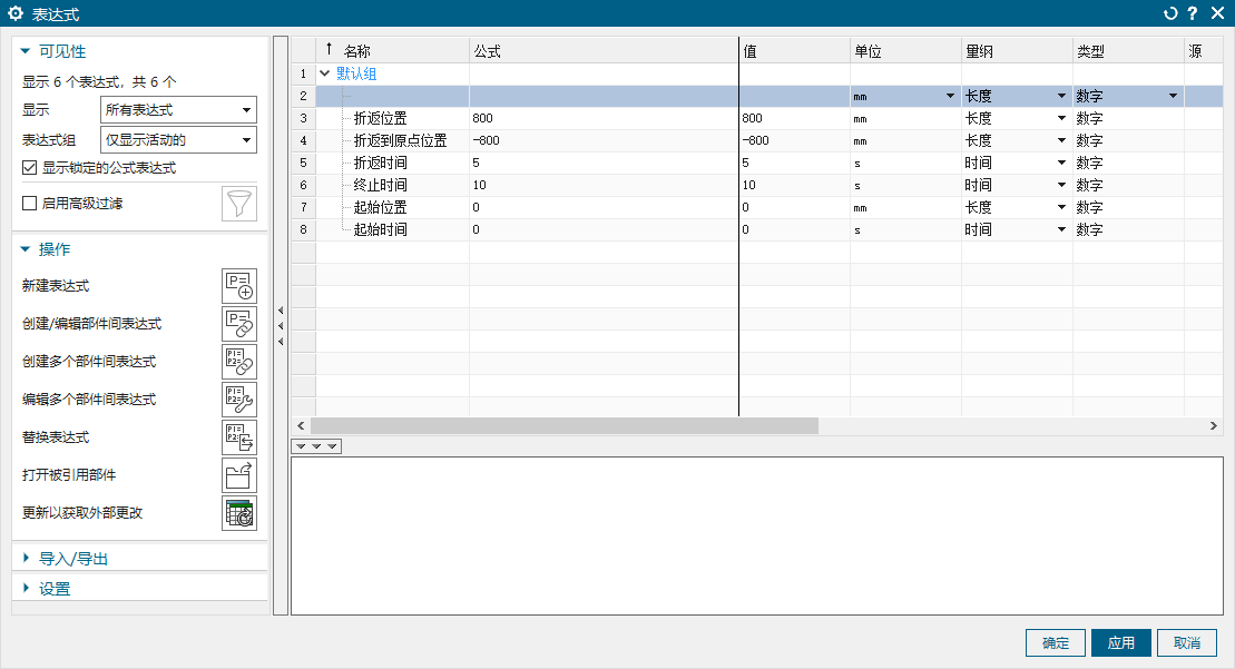 仿真环境里创建下图这些表达式,注意图中单位和量纲,主要去切换量纲,单位就自动出来了,仿真找不到表达式的用命令搜索表达式调出来