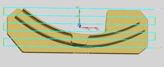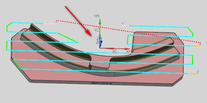 5、设置完成以上参数后,生成刀路就可以得到异形工件杀平面的刀轨,如下图所示: