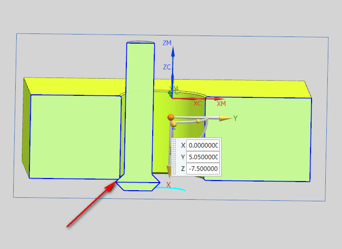7、刀具与参数设置完成后,生成刀路就可以得到背面C角的刀轨,这里通过视图截面看下效果,如下图所示: