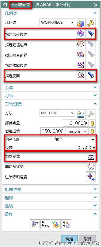 2、在平面轮廓铣界面中