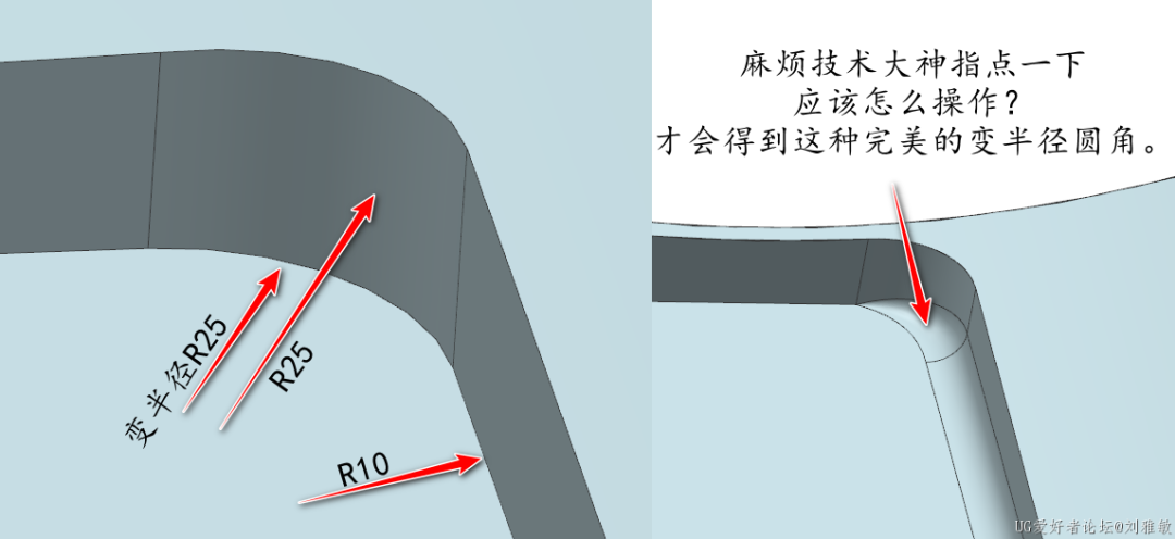 麻烦技术大神指点一下,应该怎么操作,才会得到这种完美的变半径圆角?
