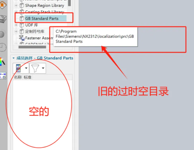但NX2312标准件库默认目录,依然为旧的安装目录,此问题由GC大中华工具,目录改变导致。