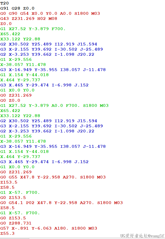 后处理文件没有问题,整个程序段处理出来程序,没有G54.1 P1的坐标 ,单独处理就有G54.1 P1。