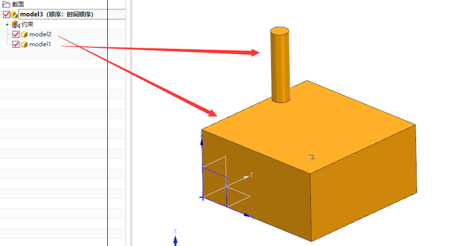 比如想要在圆柱下方的位置对方块进行开孔。