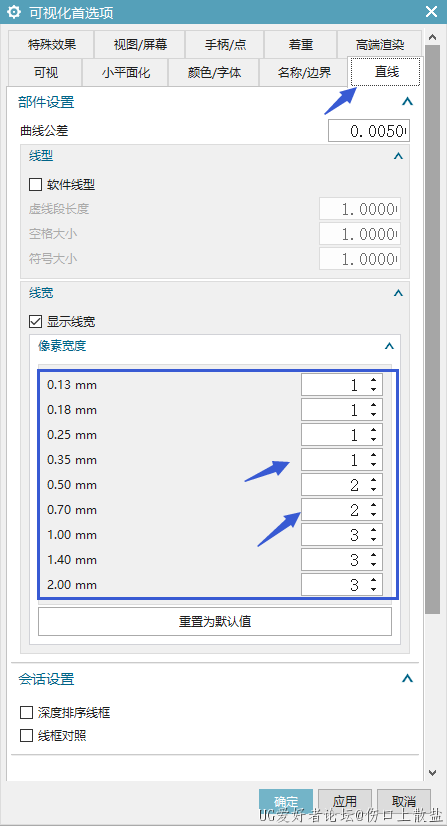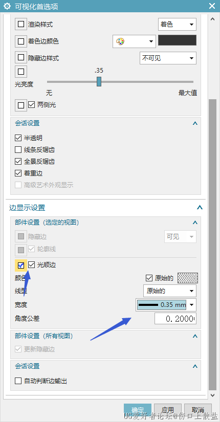 光顺边的粗线修改如下,在可视化首选项-可视里面