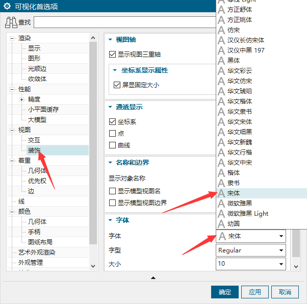 首选项-可视化-视图-装饰-字体,改为中文字体即可!
