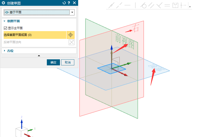 图中的前视图、顶部、右这些草图平面提示是怎么调出来了的,软件版本是2023,这个是公司里面的,家里的同样版本就没有这个提示,找了好久也没有找到哪里去设置的。