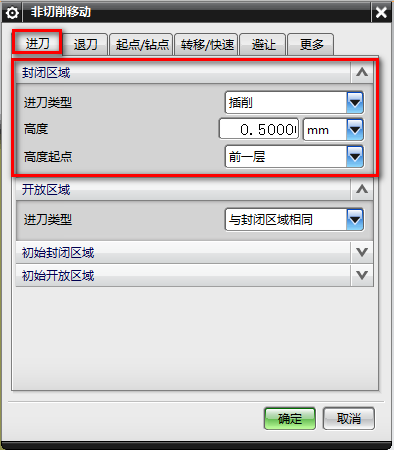9、非切削移动,进刀-进刀类型-插削,高度0.5MM: