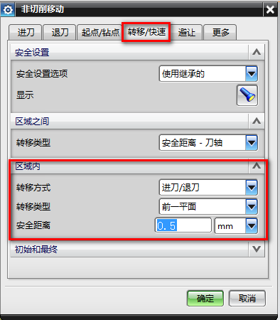 10、非切削移动-转移/快速,区域内-转移类型-安全距离: