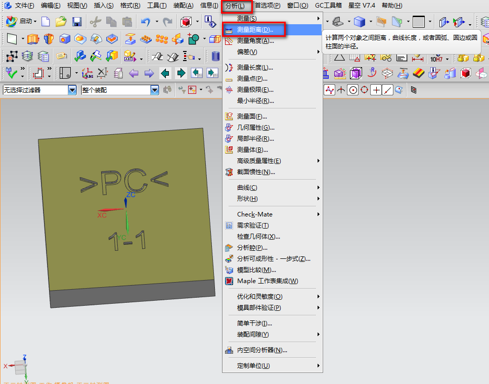 1、使用分析-测量距离: