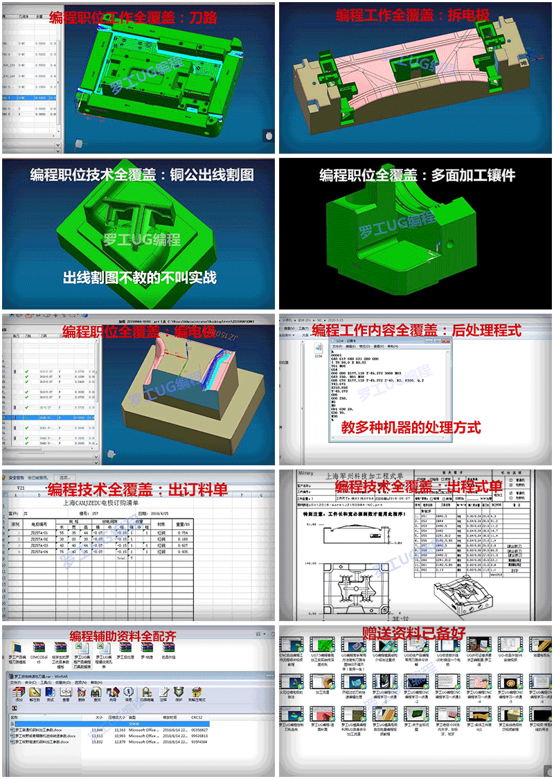 我罗工这套初级到出师流程教程学习模式为:视频+图档教材+软件外挂模板等+答疑+指导+考试+审核+交流群+永久售后,逆向教学讲究跟着做,多动手,多记,多背,跟着做不出来找我罗工,前期抓流程,后期抓连贯运用(例如考驾照先教记点,然后到自己开车时就知道是边走边打方向盘)。视频分四期:首期跟着做完、背完,然后问我要考试。你把作业做好后给我审核(审的作用是找出不足点加以改正),我会把错误点截图给你,并附上解决方法。考试合格后更新视频你继续学习(技术难度在提升),视频学完后又考试,然后再审图改善你的不足,直到4次考试考完审完!这种模式你才真正知道自己到底学了多少,学的能不能用,是不是学对了!学习途中有问题尽管问!等你把我这流程教程学完就必然会发现自己已经能编模仁、编滑块、拆电极、出放电图、出线割图,产品就更不在话下了等等编程事务了,出师前我会给你7个锦囊,5个保障:保你学会编程、 保你顺利面试、保你稳操胜券、保你下雨有伞、保你售后无忧!