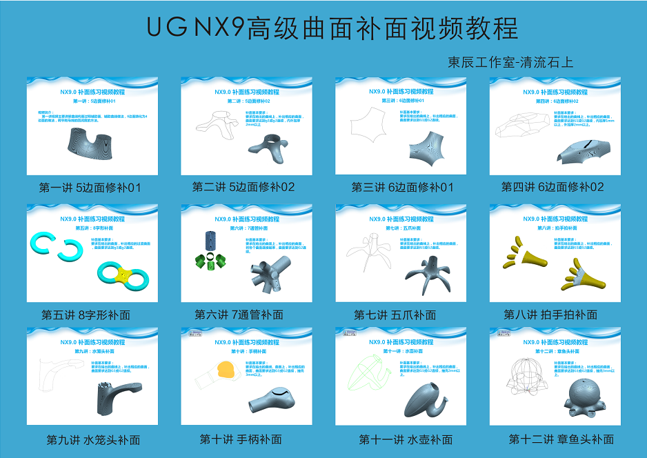 通过12个视频来详细讲解NX9.0曲面补面的高级技巧与应用,思路清晰,方法独特,并配套相应的PART练习文档。