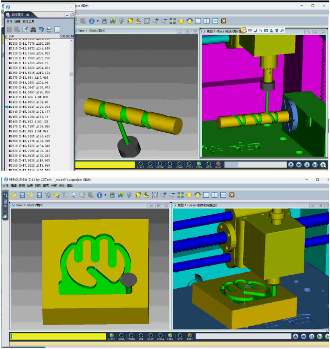 VERICUT软件是美国CGTECH公司开发的数控加工仿真系统,由NC程序验证模块、机床运动仿真模块、优化路径模块、多轴模块、高级机床特征模块、实体比较模块和CAD/CAM接口等模块组成,可仿真数控车床、铣床、加工中心、线切割机床和多轴机床等多种加工设备的数控加工过程,也能进行NC程序优化,缩短加工时间、延长刀具寿命、改进表面质量,检查过切、欠切,防止机床碰撞、超行程等错误;具有真实的三维实体显示效果,可以对切削模型进行尺寸测量,并能保存切削模型供检验、后续工序切削加工;具有CAD/CAM接口,能实现与UG. CATIA及MasterCAM等软件的嵌套运行。VERICUT软件目前已广泛应用于航空航天、汽车、模具制造等行业,其最大特点是可仿真各种CNC系统,既能仿真刀位文件,又能仿真CAD/CAM后置处理的NC程序,其整个仿真过程包含程序验证、分析、机床仿真、优化和模型输出等。