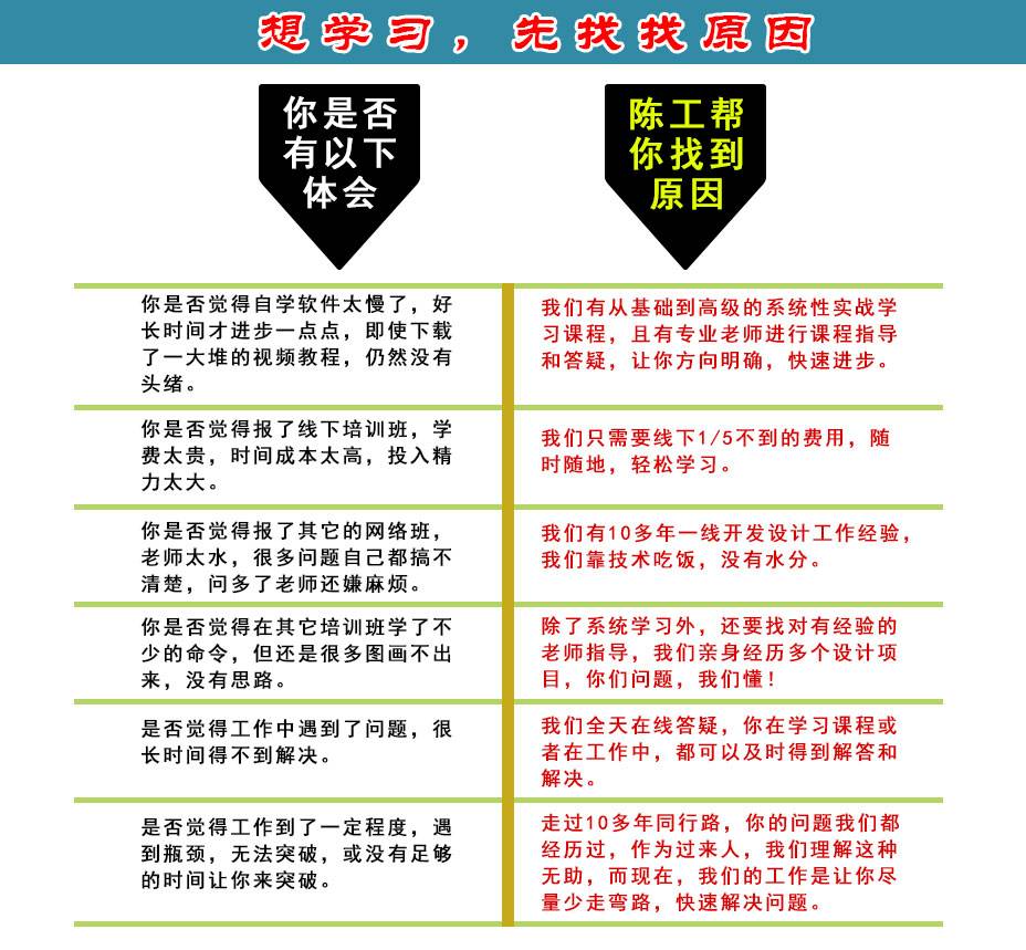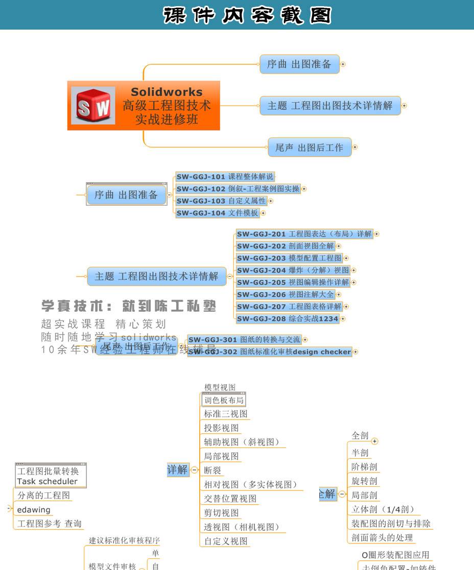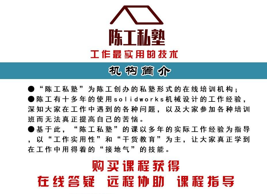 本课程是由陈工亲自讲解和亲自规划的超实战实性课程,通篇贯彻陈工的“工作实用性”和“干货教育”的教学理念,向学员们分享和传授最具实用价格的实战性专业技术,全面深入的讲解SW出图的方方面面。