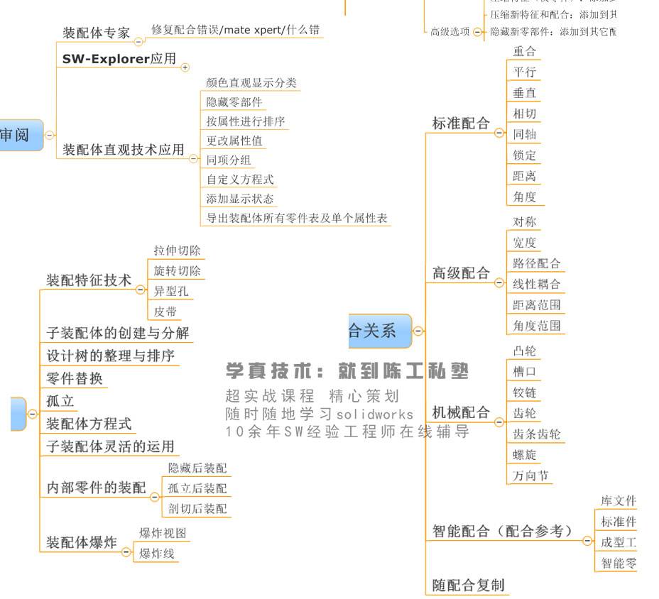 本课程由陈工亲自讲解和亲自规划的超实战实性课程,通篇贯彻陈工的“工作实用性”和“干货教育”的教学理念,向学员们分享和传授最具实用价格的实战性专业技术,全面深入讲解SW零件建模的方方面面。